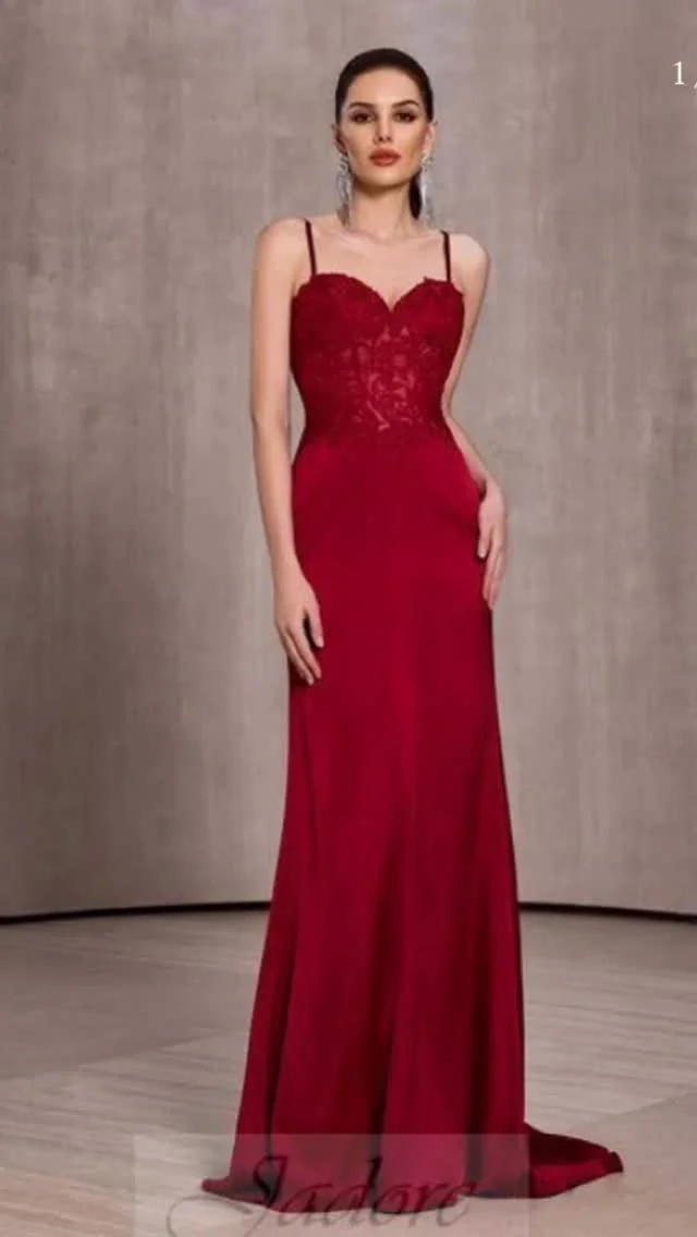 Simple and elegant satin A-line gown with square neck and leg slit and pockets, by Cinderella Divine (style 108402) in french navy size large - available to order in other sizes, and other colours, red, black, blush, burgundy, emerald, purple, light blue, royal greenery, dark sage and sienna.